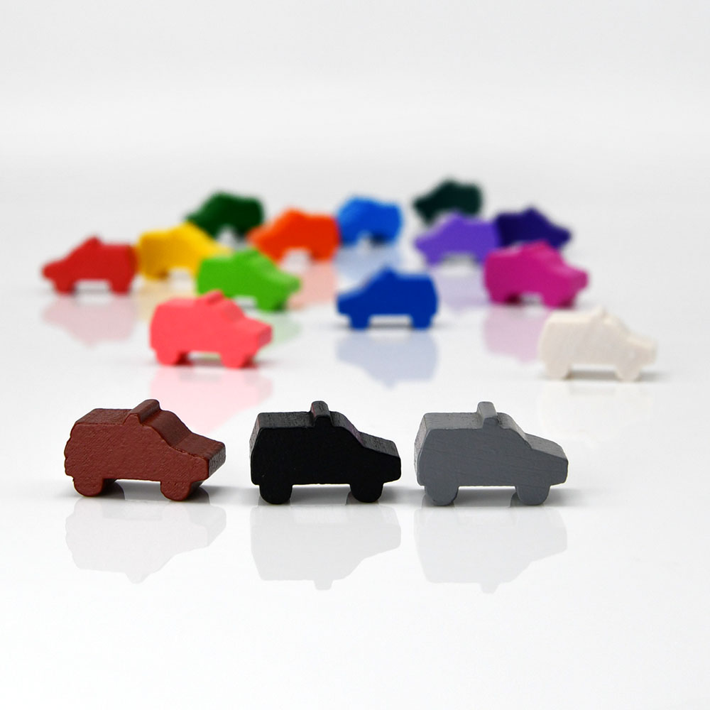 It’s a wooden police car token. The dimensions are 20 × 12 × 10 mm (0.79 × 0.47 × 0.39 inches), and it’s currently available in 17 different colors.
