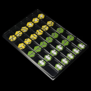 Our trays are made of thick transparent plastic and they are dedicated to the storage of board game components.