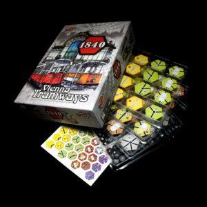 This is set of 3 trays to sort all track tiles and tokens. This way your game will be ready to play anytime! Forget the tedious sorting of tracks before the game and figuring out where to put them. You can keep them in a tray and pass them from hand to hand when needed.
