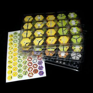 Labels are printed on semi-gloss label paper and pre-cut. They are ready to stick and fit perfectly to our tokens. There are tokens to mark the revenue during the game, stock price and stations tokens. Tokens perfectly match the stickers and elements that are already in the game.