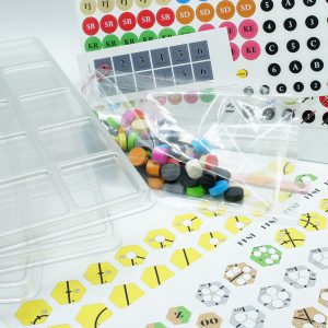 Small stickers with illustrations of the tiles that you can stick to the bottom of each compartment. This way, everything will go to their places after the game! Make your trays as useful as never before!