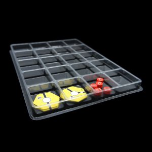 Our trays are made of thick transparent plastic and they are dedicated to the storage of board game components.