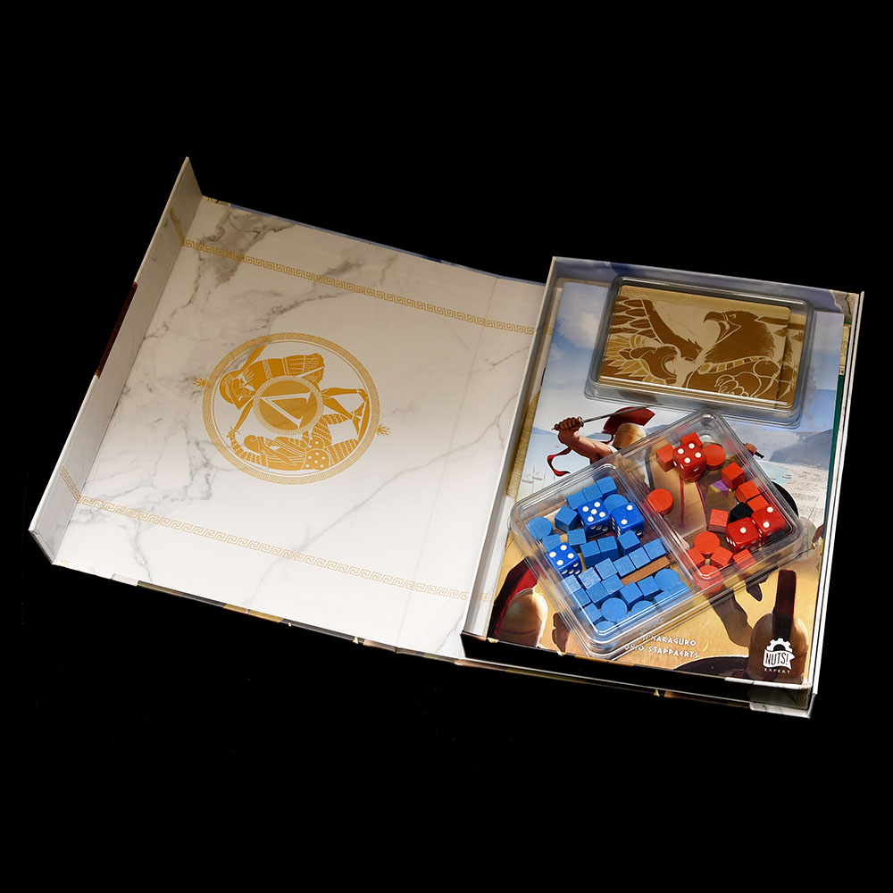 This storage solution is designed to help you sort game tokens and dice. We’ve tested it with the first English edition (2021) by Nuts! Publishing, link: BGG.
