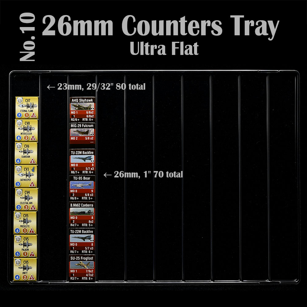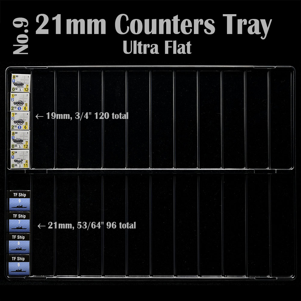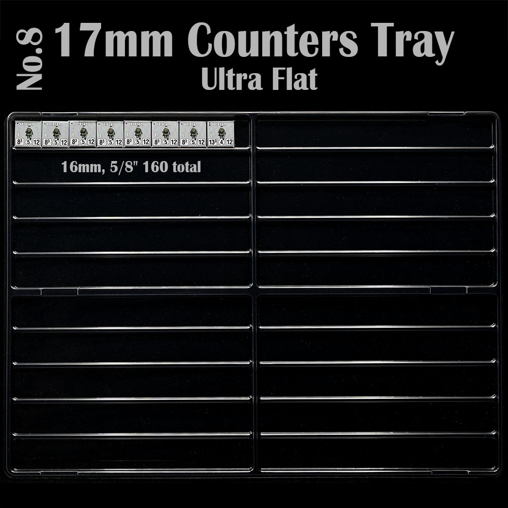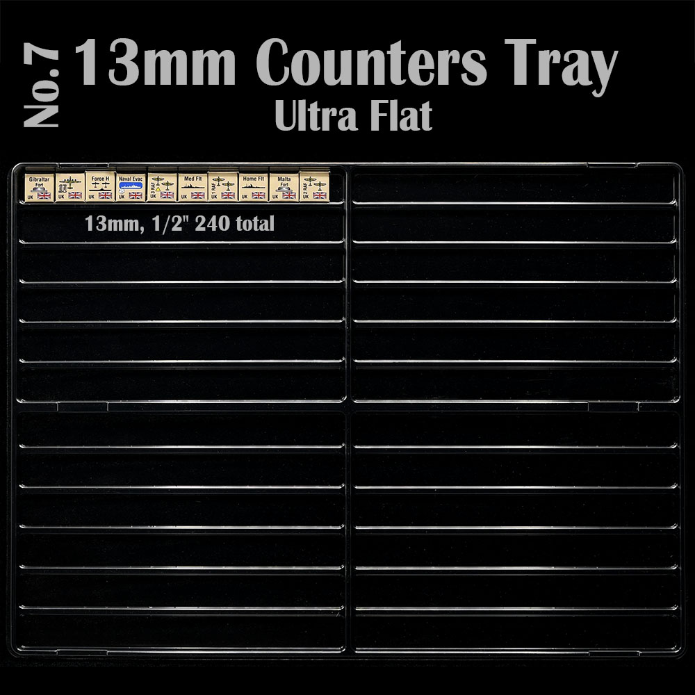 These new counter trays are great for games with many unique counters. I’ve used the 13mm trays for Axis Empires Ultimate Edition and I could fit all in the box without lid and in a way that is very useful to look for the counters while playing. Great to see you coming out with innovative ways to help us organise the games 🙂