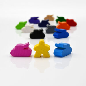 We try to keep the colors of each item in the same shade, for example the cylinders ordered and the blue meepel from our store will have the same blue color. Some of the colors have been prepared especially for our order.