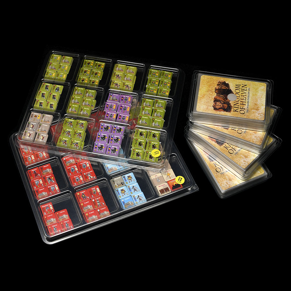This set includes small trays specifically designed for sleeved cards. This set fits in the box perfectly.