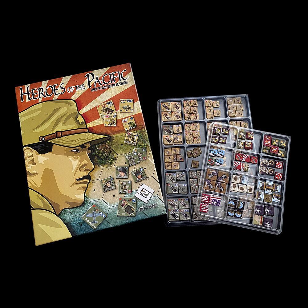 There are two box versions for Heroes of the Pacific: a 3-inch box and a 1.5-inch box. The trays fit perfectly in the 3-inch box, but in the 1.5-inch box, there is a 0.5-inch lift of the cover.