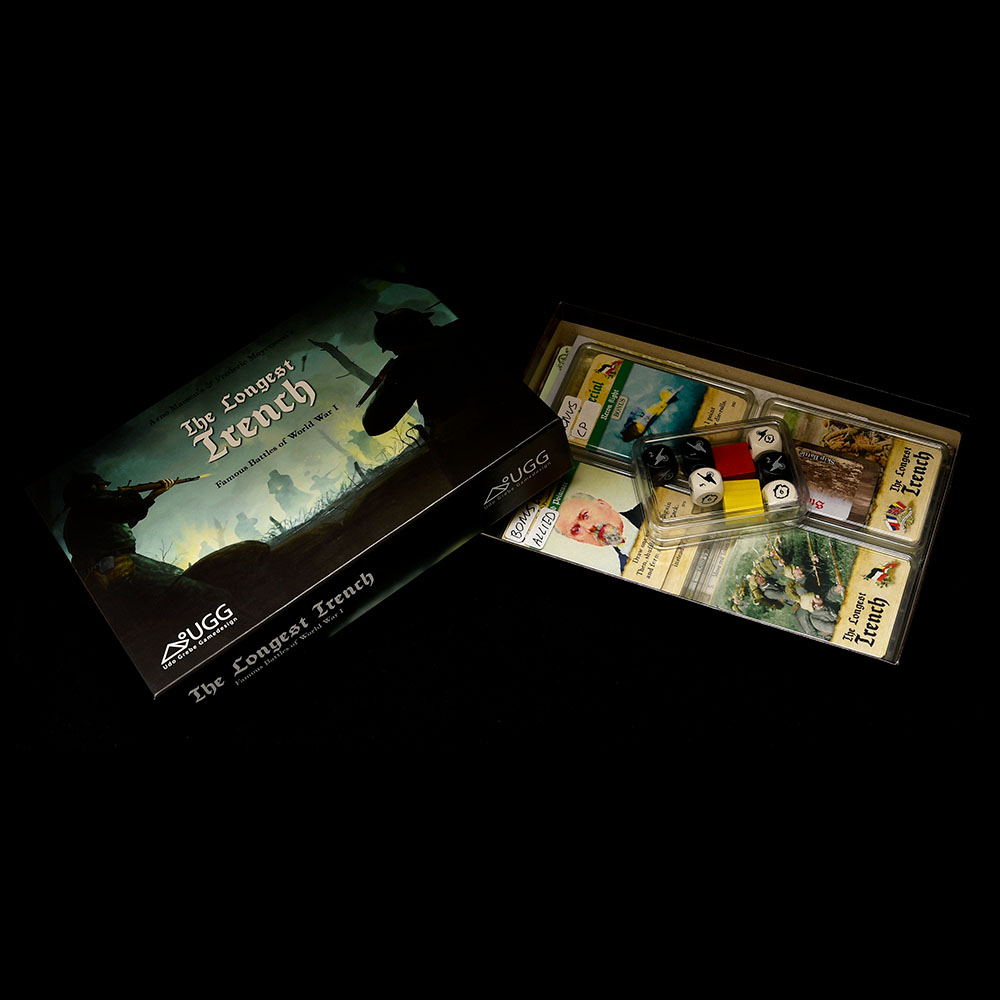 This storage solution is designed to help you sort game cards and dice. We’ve tested it with the first English edition (2020) by Udo Grebe Gamedesign, link: BGG.